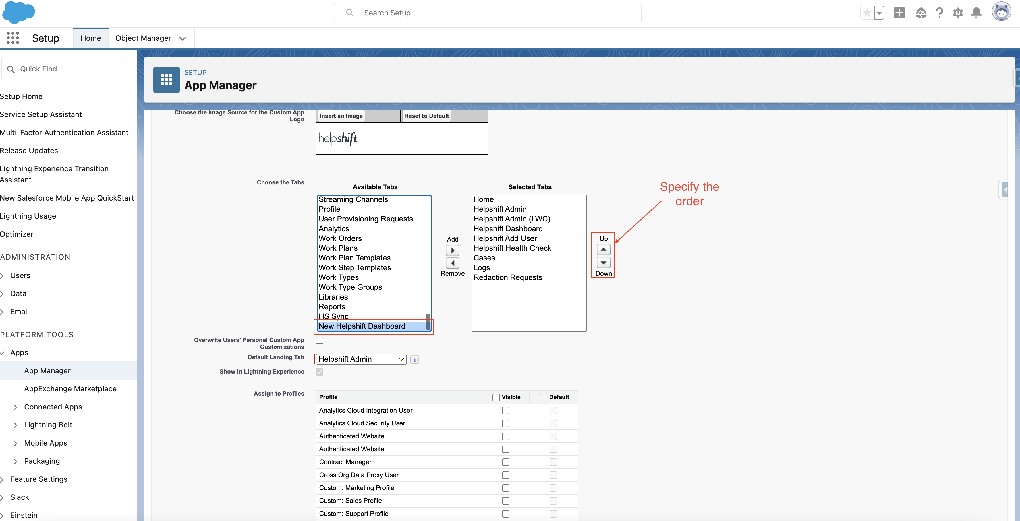 - If Helpshift Admin (LWC) tab is not visible , please follow below steps