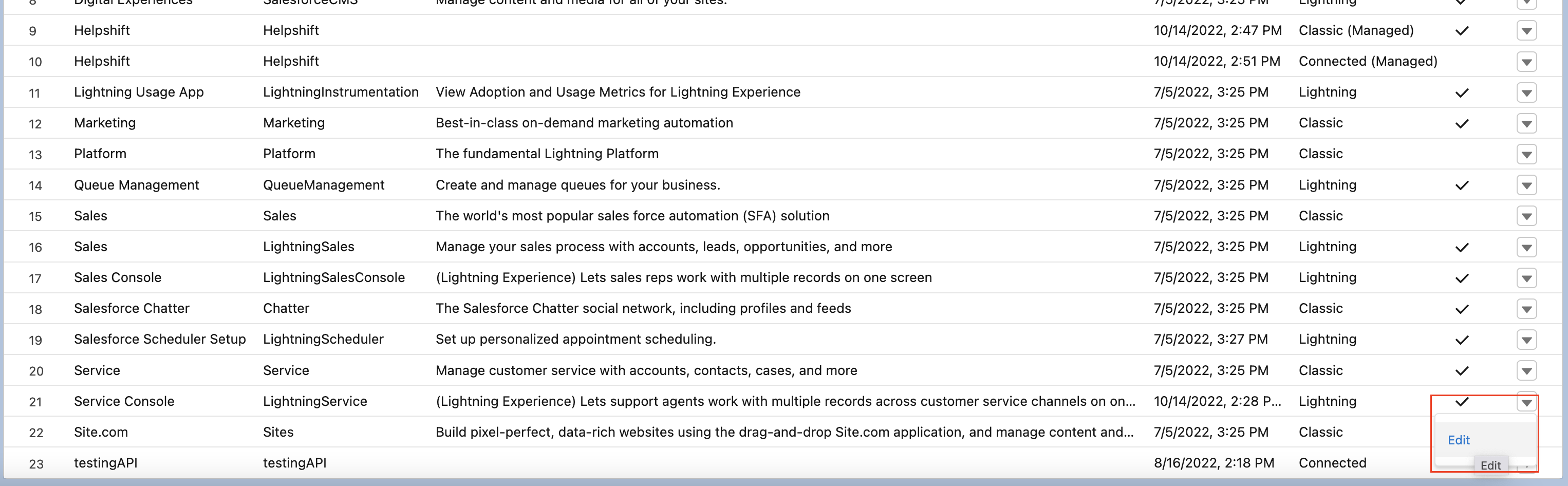 - Search for the Helpshift classic app and click on edit